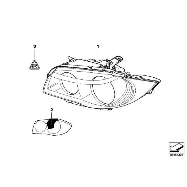 1. چراغ جلویی سمت چپ برای مدلهای E81/E82/E87/E88 (سالهای ۲۰۰۴–۲۰۱۳)